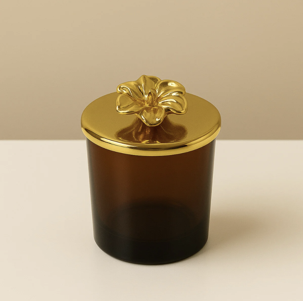 VENA KAHVERENGİ BARDAKLI ÇİÇEK KAPAKLI TARÇIN KOKULU MUM