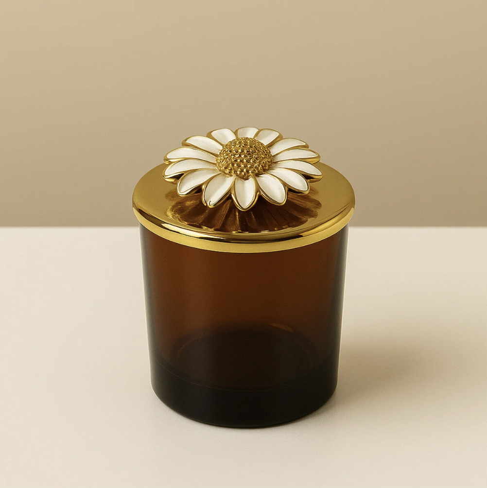 VENA KAHVERENGİ BARDAKLI PAPATYA KAPAKLI YASEMİN KOKULU MUM